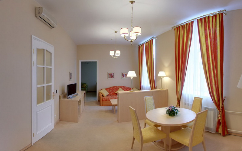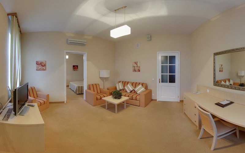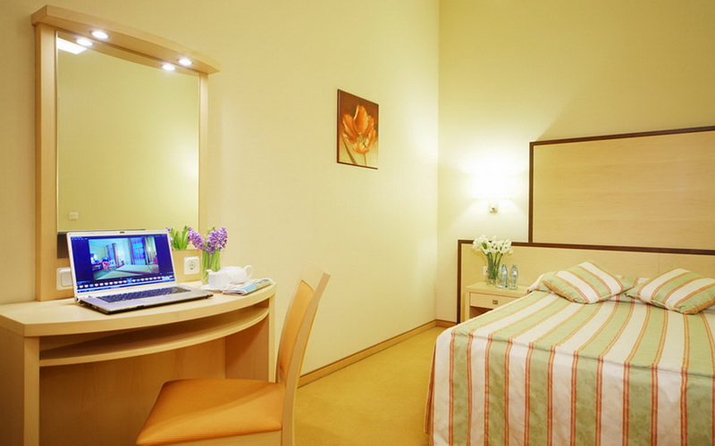 | Комфорт - одно, двухместные однокомнатные номера площадью 18 кв.м. и 28 кв.м. соответственно. В одноместном номере: кровать, мягкая мебель, шкаф, телевизор (спутниковое и кабельное ТВ), телефон, холодильник, кондиционер. В двухместном номере: две стандартные кровати или одна большая кровать, мягкая мебель, письменный стол, шкаф, телевизор (спутниковое и кабельноеТВ), телефон, холодильник, кондиционер. |