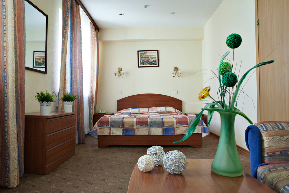 | Стандартный – одно, двухместные номера со всеми удобствами. В каждом номере: раздельные кровати, тумбочка, стол, стулья, шкаф, телевизор, телефон. Ванная комната оснащена отечественной сантехникой. |