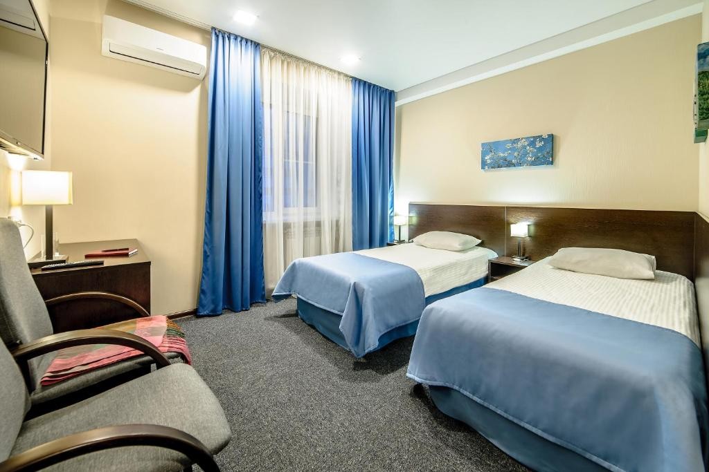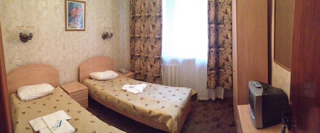 | Блок (есть возможность установить дополнительное спальное место – раскладушку) – одно-, двух-, трехместные номера эконом-класса без ремонта с удобствами на блок, состоящий из двух изолированных комнат. В каждой комнате – скромная советская мебель: раздельные кровати, прикроватные тумбочки, журнальный столик, стулья, телевизор, шкаф в прихожей, телефон на блок. Каждая комната закрывается на ключ. Ванная комната оснащена советской сантехникой. |